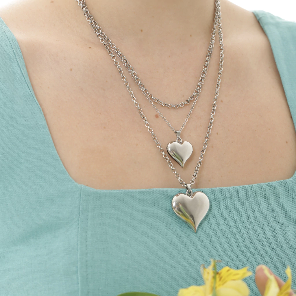 Apresentamos o Colar Amor em Dose Dupla em Aço, um acessório que une estilo e delicadeza em três voltas irresistíveis. Com duas correntes no elo português (40cm e 50cm) e uma corrente fina e delicada de 45cm, ele traz um design sofisticado e versátil para qualquer look.