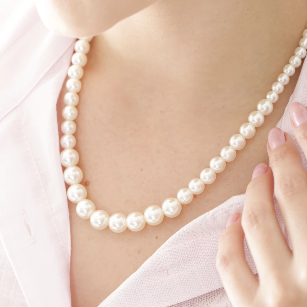 Apresentamos o Colar Clássico de Pérolas, uma joia que une sofisticação e charme atemporal. Com 38 pérolas de 6mm, 18 de 8mm e 9 de 10mm, este colar oferece um design harmonioso e elegante.
