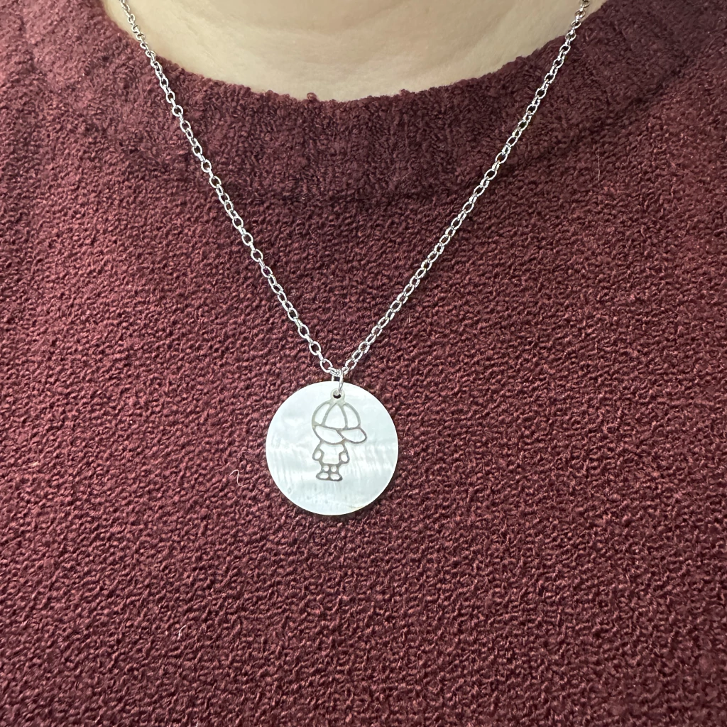 Conheça a Gargantilha em Aço com Madrepérola e Filho (a), uma joia delicada que une beleza e significado. Seu pingente redondo de madrepérola de 25mm apresenta o detalhe especial do filho (a) em aço, simbolizando amor e proteção.