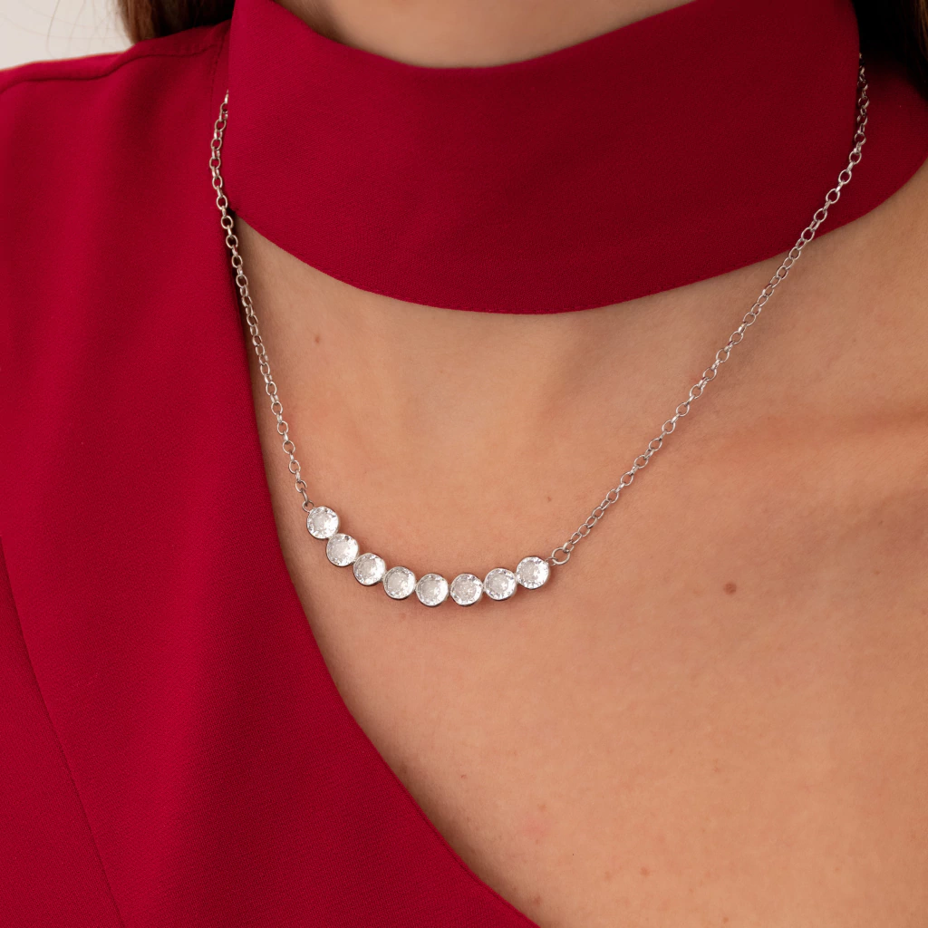 Quer dar um up no visual com muito brilho e zero alergia? A Gargantilha em Aço Inox com 8 Zircônias 6mm é a escolha certeira! Com 40cm + 5cm de extensor, ela se ajusta direitinho no seu pescoço. As zircônias na cravação inglesa garantem um brilho que não deixa passar despercebido. Material inoxidável e hipoalergênico para você brilhar sem drama!